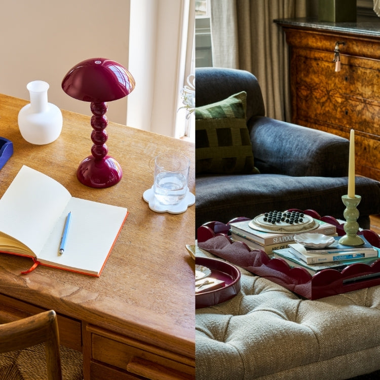And perhaps that’s why we’re so smitten. Burgundy doesn’t just decorate a room, it creates a mood. It invites conversation, lingers in the memory, and adds an unmistakable note of elegance to everyday life. Whether it’s the warm glow of our Cherry Bobbin Lamp or a discreet pop on your coffee table, it’s a shade that will always feel like the final, perfect brushstroke.