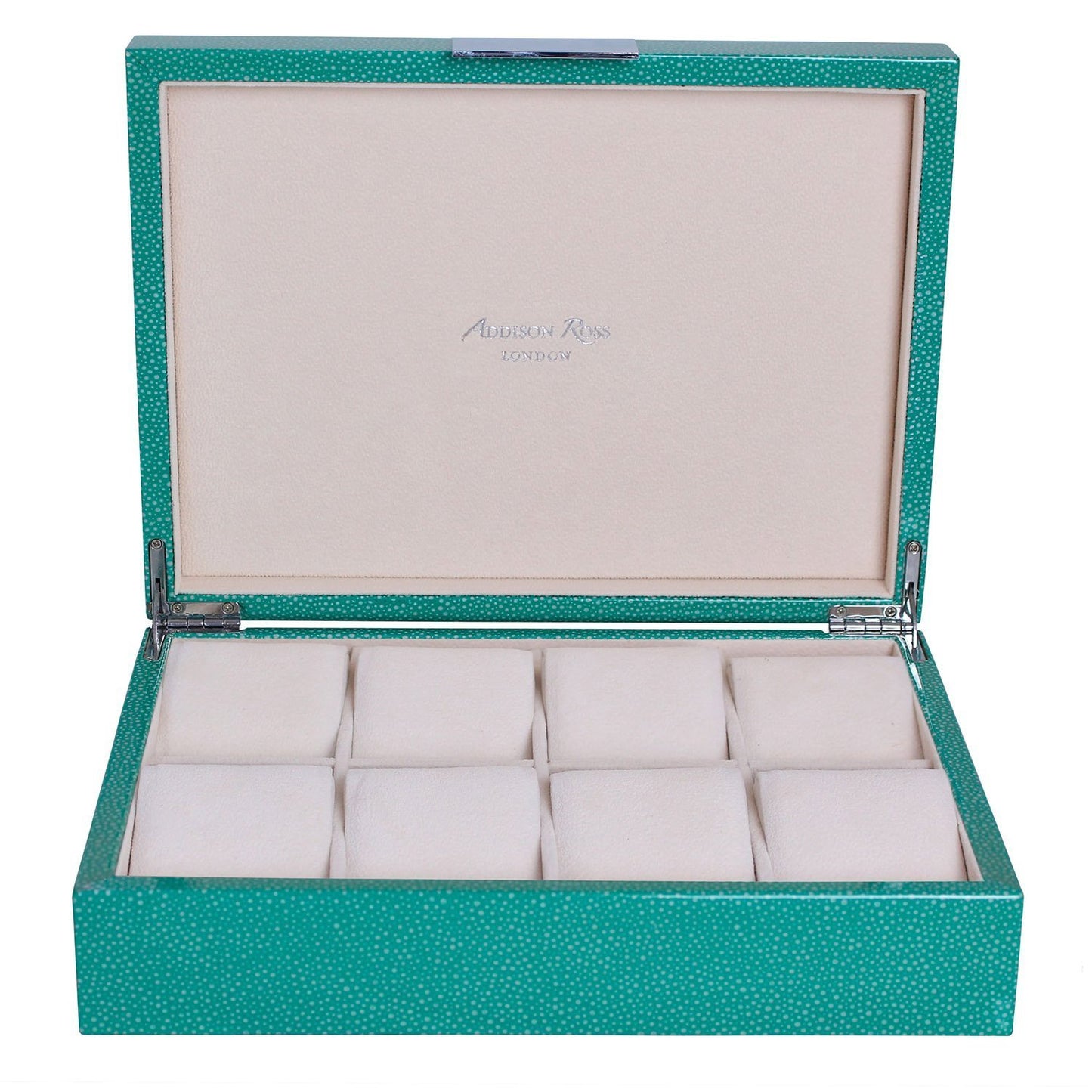 Lined in cream suede these boxes feature 8 compartments with cushions suitable for storing watches.