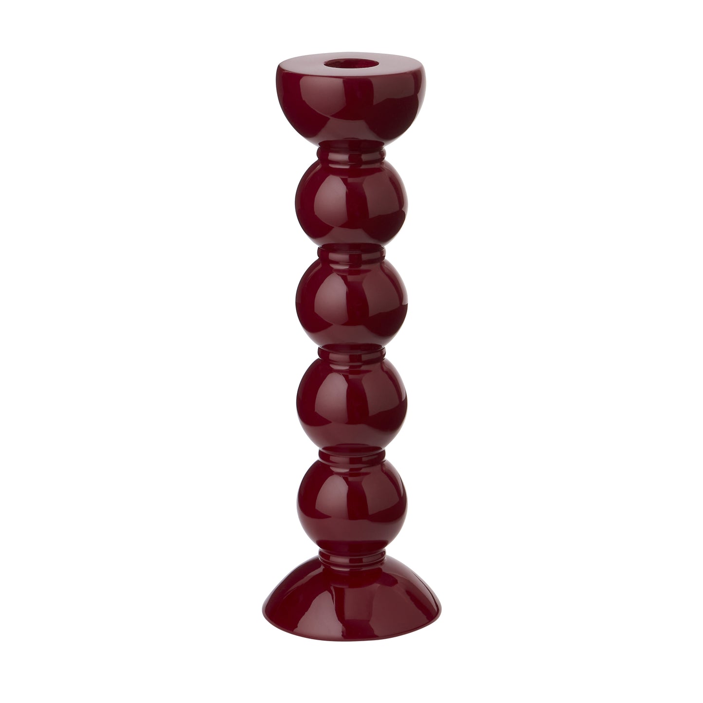 An Addison Ross exclusive design, our tall cherry lacquered bobbin shaped candlestick is made from sustainably sourced rubber wood, finished with 8 coats of high gloss lacquer hand polished between each coat. Suitable for standard sized dinner candles. Each candlestick can be paired with our Wax LED Candles or traditional wax candles. When using regular candles, ensure they are not burned below 2" to prevent damage to the candlestick.