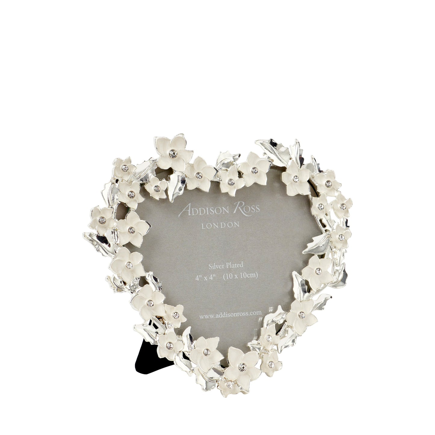 This white enamel and silver flower frame is long established as one of our prettiest and most enchanting frames, featuring a hint of diamante in the centre of the flowers.