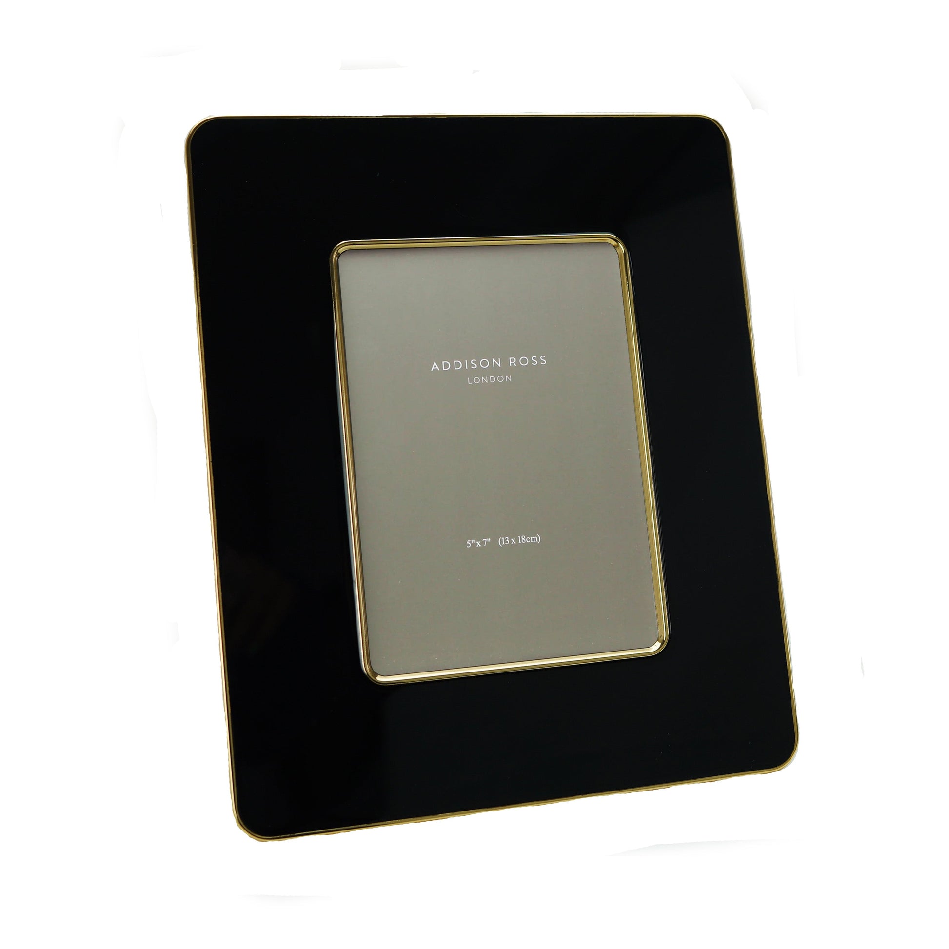 Gold Edged Black Studio Enamel Photograph Frame. Fashionable, exclusive and rich, our white 5cm wide enamel Photograph Frame is perfect for black and white or colour photos in classic or contemporary settings. Beautifully tissue wrapped and gift boxed in our stunning branded packaging.