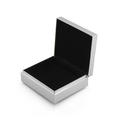 Beautifully finished, our polished faux grey horn box is finished in silver plate. This versatile hinged trinket box is lined with rich black velvet both inside and beneath the base. A perfect size for jewelry, cuff links or desk top bits and pieces.