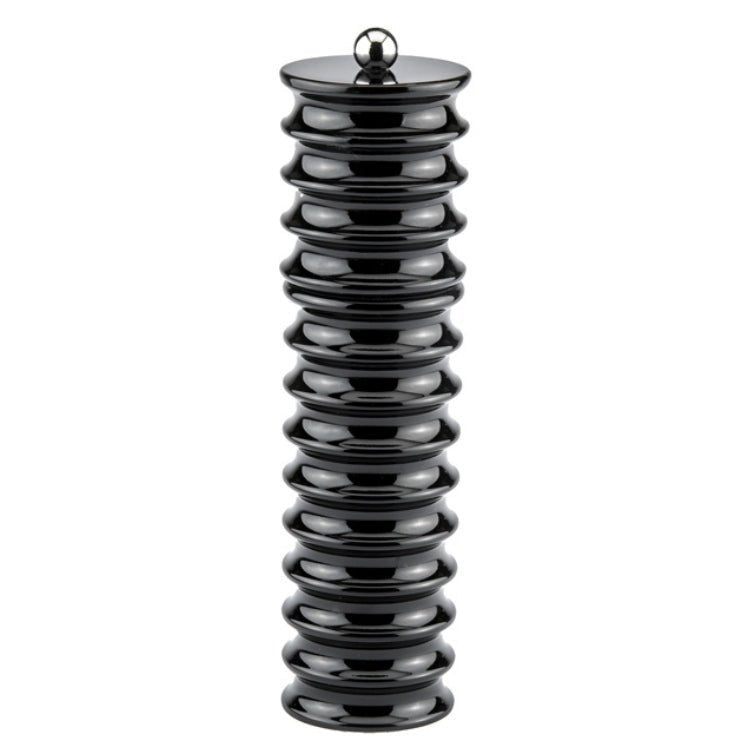 The Black lacquered Twister is made from sustainably sourced rubber wood, finished with 8 coats of high gloss lacquer hand polished between each coat. Using a ceramic mechanism, the mill requires a clockwise motion to activate.