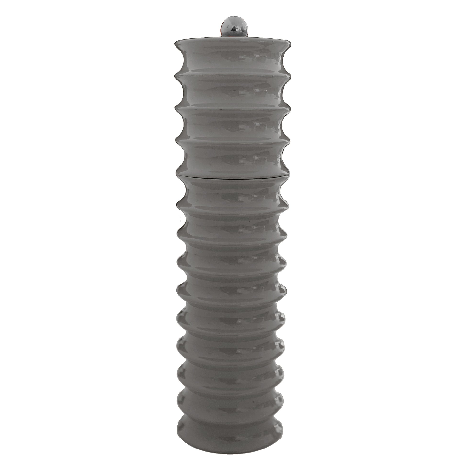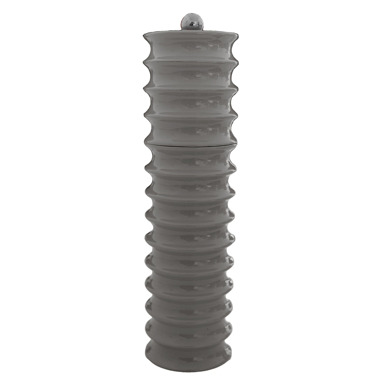 The Grey lacquered Twister salt mill, pepper mill is suitable for either Salt or Pepper. Featuring a scooped concave scallop shape.