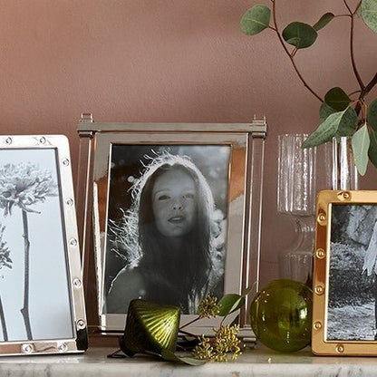 A stylish Silver Plate Frame with Clear Acrylic pillars create a stylish sense of formality to this frame. Able to stand portrait or landscape with a beautiful velvet backstand and gift boxed.