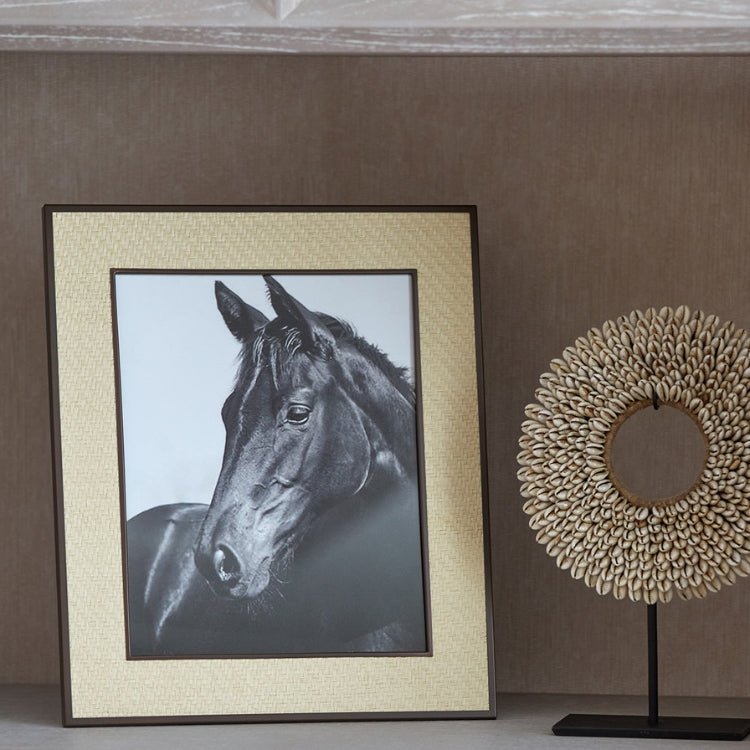 Our collaboration with Sophie Paterson brings you exquisite cream coloured ecru faux shagreen frames, elegantly encased in bronze coloured metal trim. With a versatile black velvet backstand, they can stand in landscape or portrait orientations. Remember to clean gently with a dry cloth and avoid cleaning sprays. Comes beautifully gift boxed.