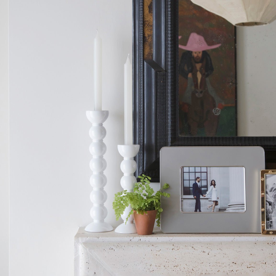 An Addison Ross exclusive design, our extra tall white lacquered bobbin shaped candlestick is made from sustainably sourced rubber wood, finished with 8 coats of high gloss lacquer hand polished between each coat. Suitable for standard sized dinner candles. Each candlestick can be paired with our Wax LED Candles or traditional wax candles. When using regular candles, ensure they are not burned below 2" to prevent damage to the candlestick.